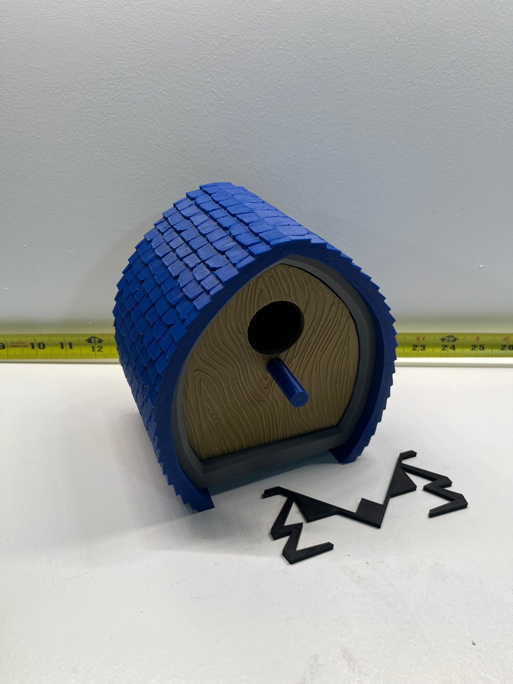 3D printed bird house that will never rot! Roof color and pin can be different colors. It has a hole on the back for hanging it with a screw.